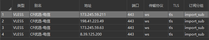 CF官方列表,推荐使用CM整理列表即可,该列表包含了大部分三网优选IP段,且会不定期更新维护; - 端口:默认为
